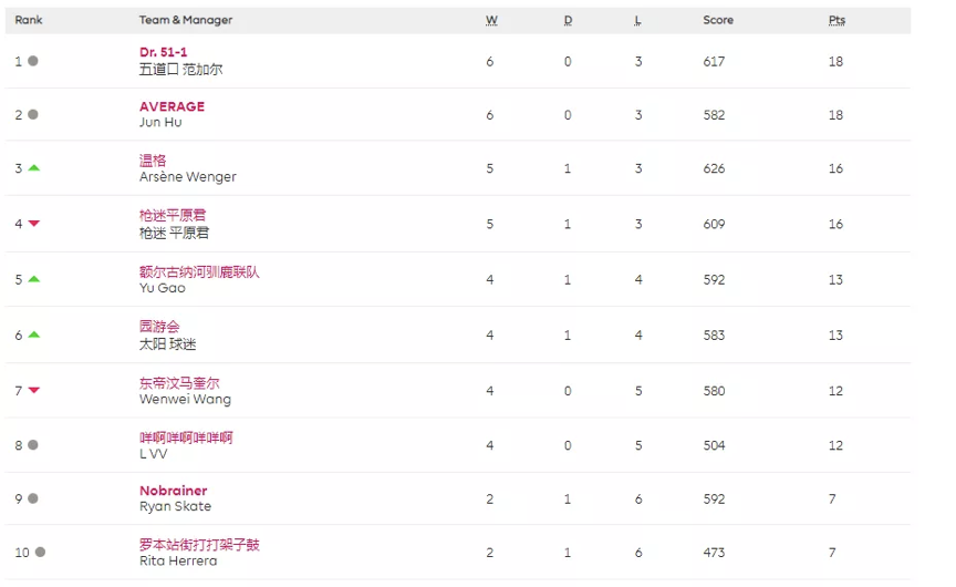 海淀巴菲特、股神温格本轮予取予求一飞冲天,9人上分5人上双一举砍下惊人的127分,很好地实践了“必将破百”理论,也为甘地名言“你的球员将以概率1集体爆发”增添了鲜活的新例;而FPL老牌劲旅东马纸面阵容不可谓不强,最终得分不可谓不高,只是在这疯狂的比赛周面前一切都平平无奇不值一提。多线溃败之下,恐怕这是一个东马急于忘却的周末。